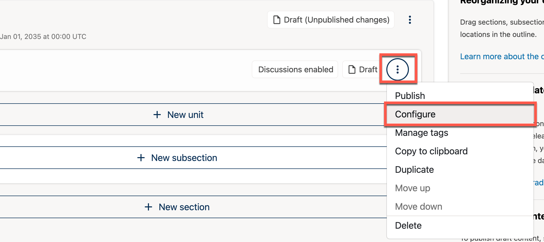 If you have more than one enrollment track in your course, or if you have enabled cohorts, you can limit a unit’s availability to specific groups of learners. For information about offering different content to different learner groups, see Offering Different Content to Different Learner Groups.